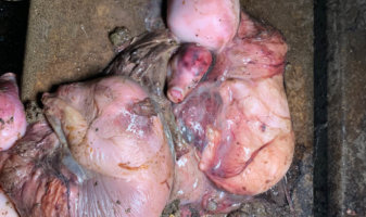 Dead piglets were found decomposing just a few feet away from their mothers and siblings.